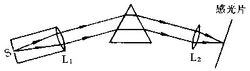 圖中所示是三棱鏡色譜儀的基本結構。狹縫S與棱鏡的主截面垂直,放置在透鏡L的物方焦面內,感光片放置在透鏡L的像方焦面內。用光源照明狹縫S, S的像成在感光片上成為光譜線,由于棱鏡的色散作用,不同波長的譜線彼此分開,就得入射光的光譜。棱鏡攝譜儀能觀察的光譜范圍決定于棱鏡等光學元件對光譜的吸收。普通光學玻璃只適用于可見光波段,用石英可擴展到紫外區(qū),在紅外區(qū)一般使用氯化鈉、溴化鉀和氟化鈣等晶體。普遍使用的反射式光柵光譜儀的光譜范圍取決于光柵條紋的設計,可以具有較寬的光譜范圍。
